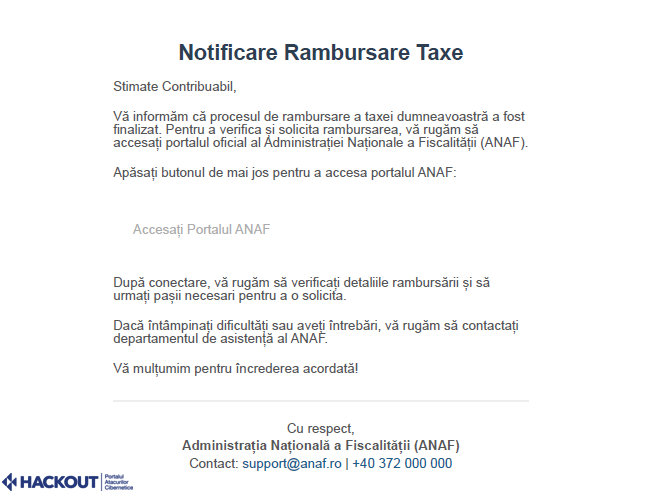 În ultimii trei ani, începutul de an a adus aproape inevitabil valuri de phishing și diverse escrocherii legate de plata taxelor. Mesajele se prezintă, de regulă, ca fiind trimise de ANAF sau de alte instituții cu atribuții în domeniul fiscal.